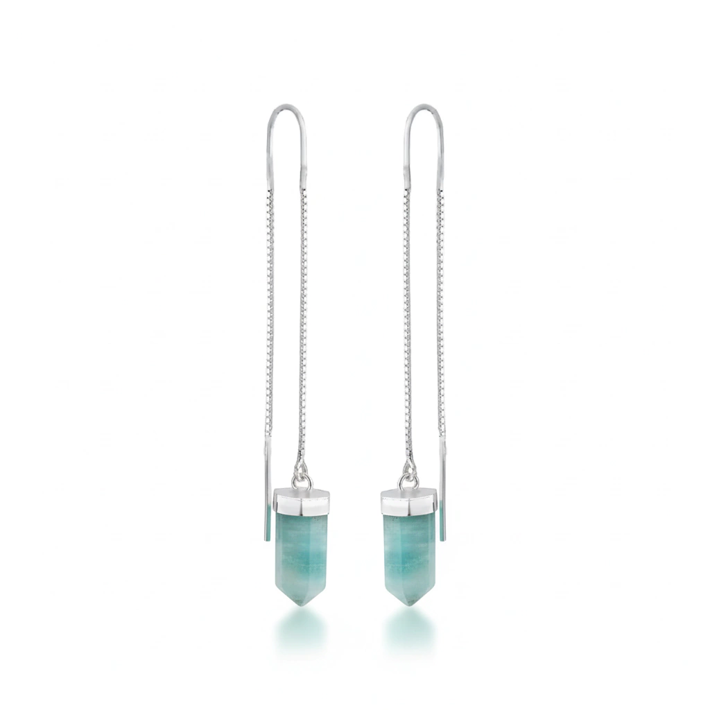 Brinco anzol feito artesanalmente em prata 925 com ponta natural de amazonita,