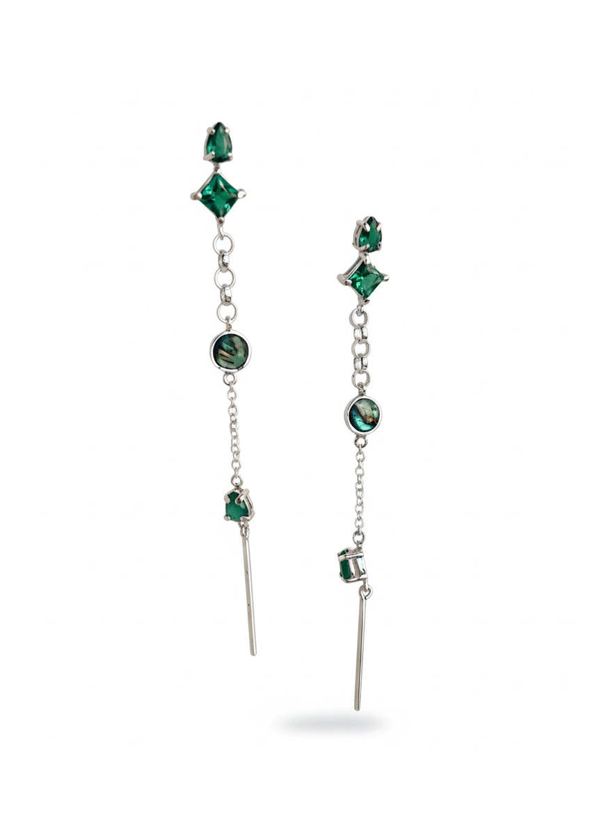 Brinco todo em prata 925 com Quartzo Verde e Abalone.