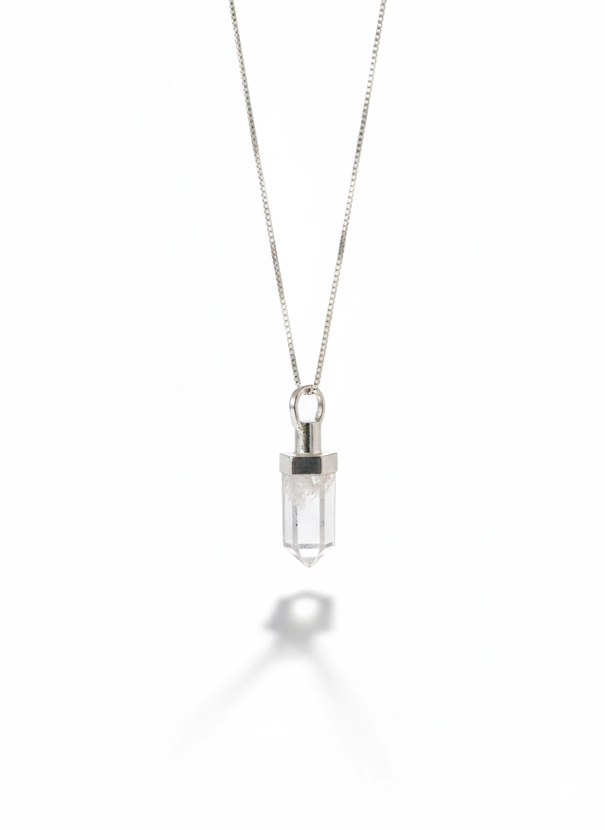 Colar na corrente veneziana 45cm com pingente difusor no cristal natural Cristal de Quartzo, todo em prata 925.
