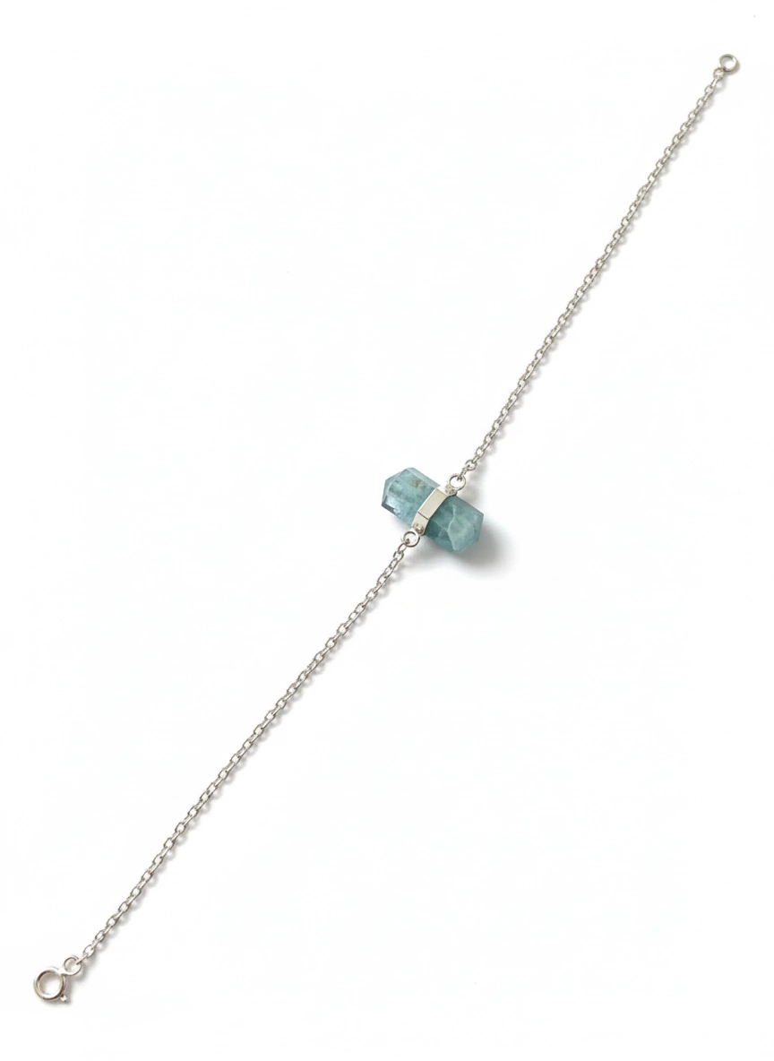 Pulseira portuguesa em prata 925 com biponta natural de Água Marinha.