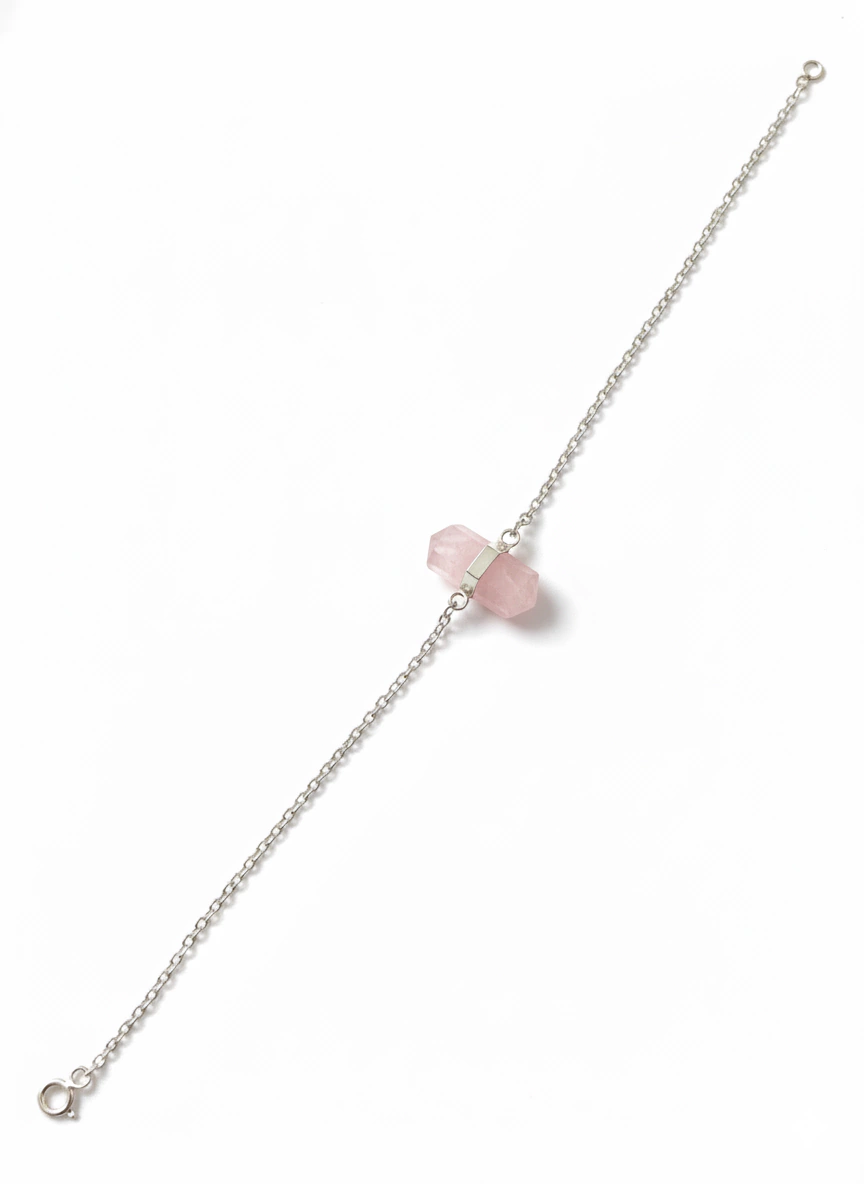 Pulseira portuguesa em prata 925 com biponta natural de quartzo rosa.